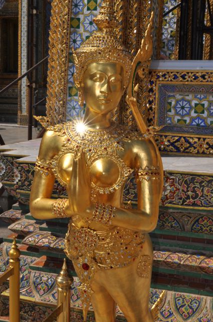 DSC_0291 Published January 6, 2015 at 425 × 640 in Bangkok Temples Golden statue of Apsonsi, the upper body of a woman and the bottom of a bird.