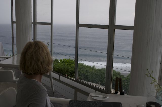 Waves crashing below.