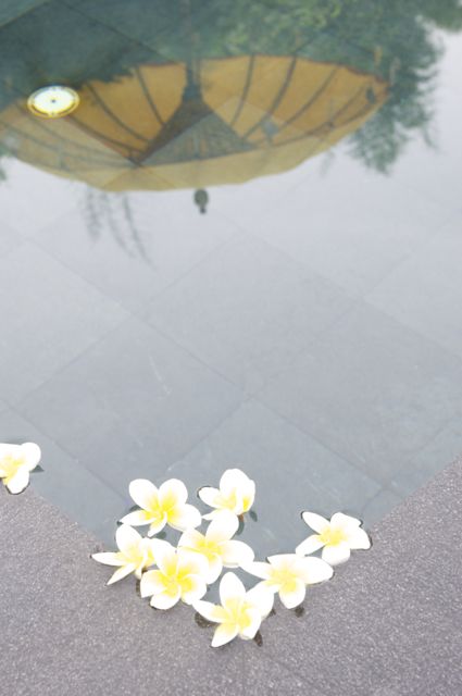 DSC_1035 Published May 8, 2015 at 425 × 640 in BITTERSWEET BALI Fangipani blossoms fell into the pool overnight.