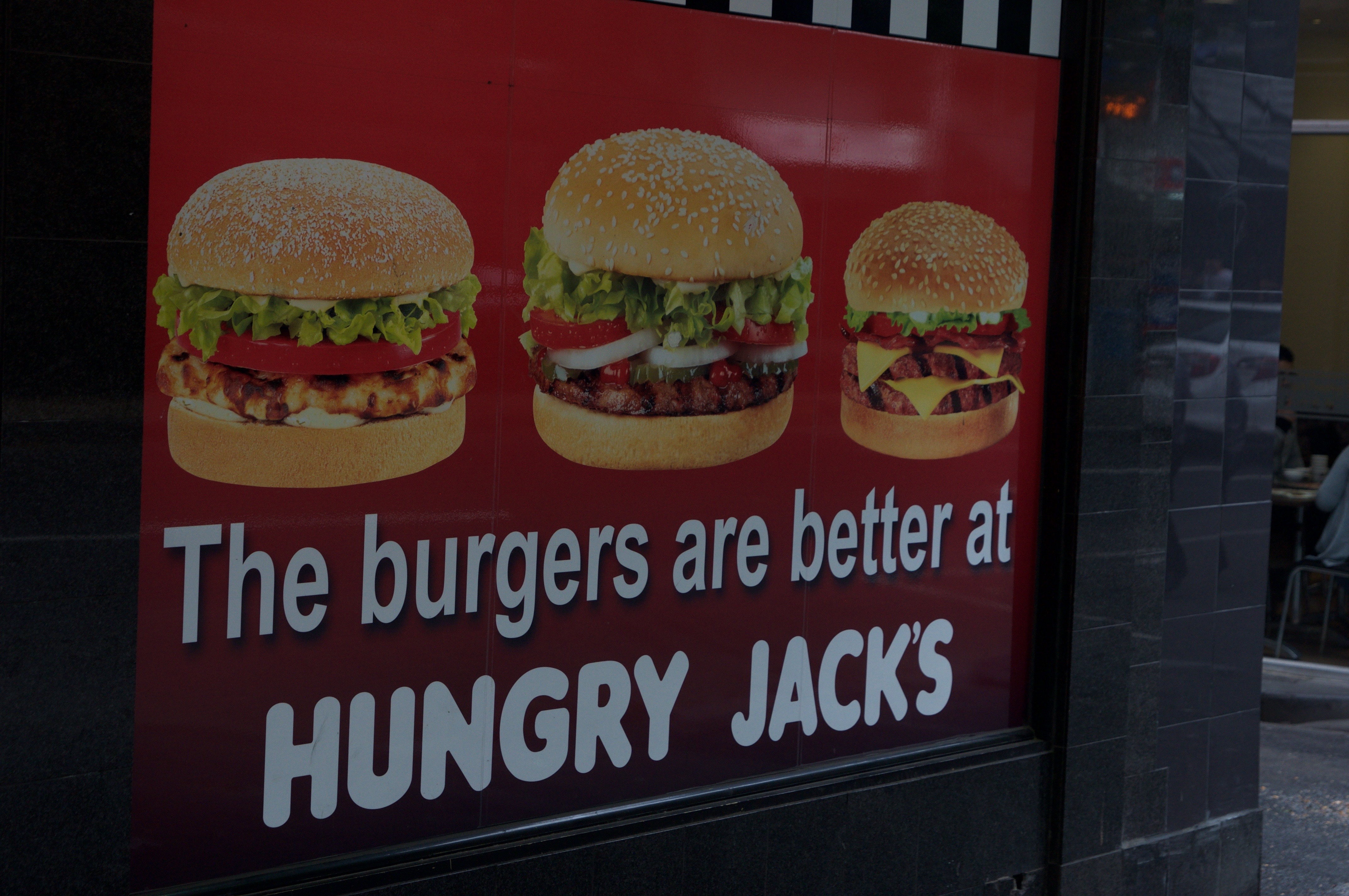 DSC_0410 Published October 24, 2015 at 4288 × 2848 in Melbourne, Australia Burger King is called HUNGRY JACKS here in Melbourne.