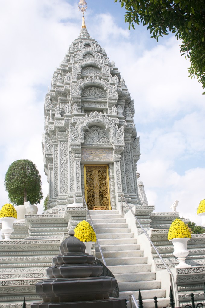 DSC_0140 Published November 16, 2015 at 2848 × 4288 in Phnom Penh, Cambodia Inside the Silver Pagoda area lie four of these Stupas…containing the ashes of past rulers.