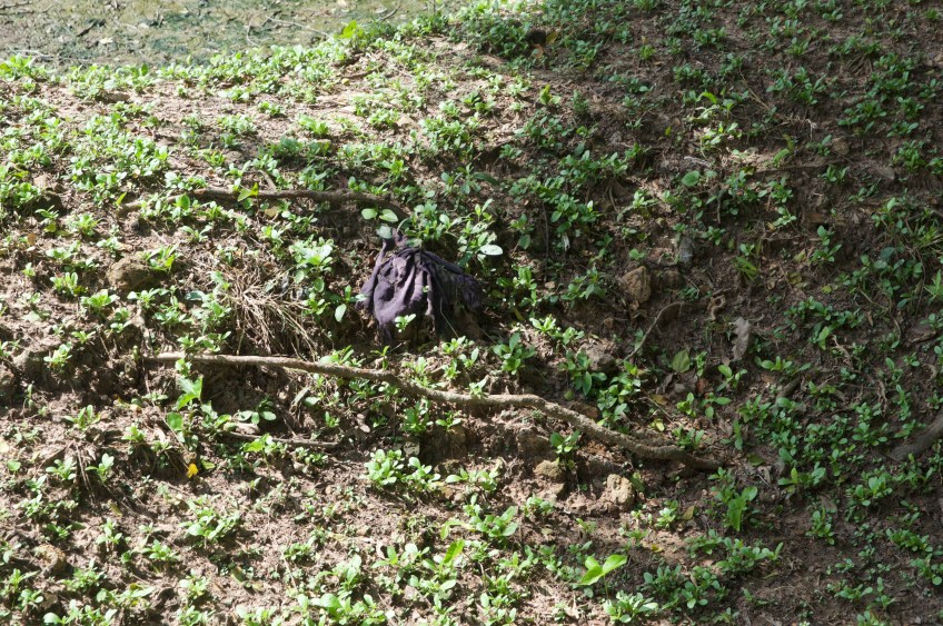 DSC_0059 Published November 16, 2015 at 4288 × 2848 in The Killing Fields of Choeung Ek After a rain, clothing, bones, teeth come up to the surface. Note the piece of clothing in the pit. They are collected and added to the collection.