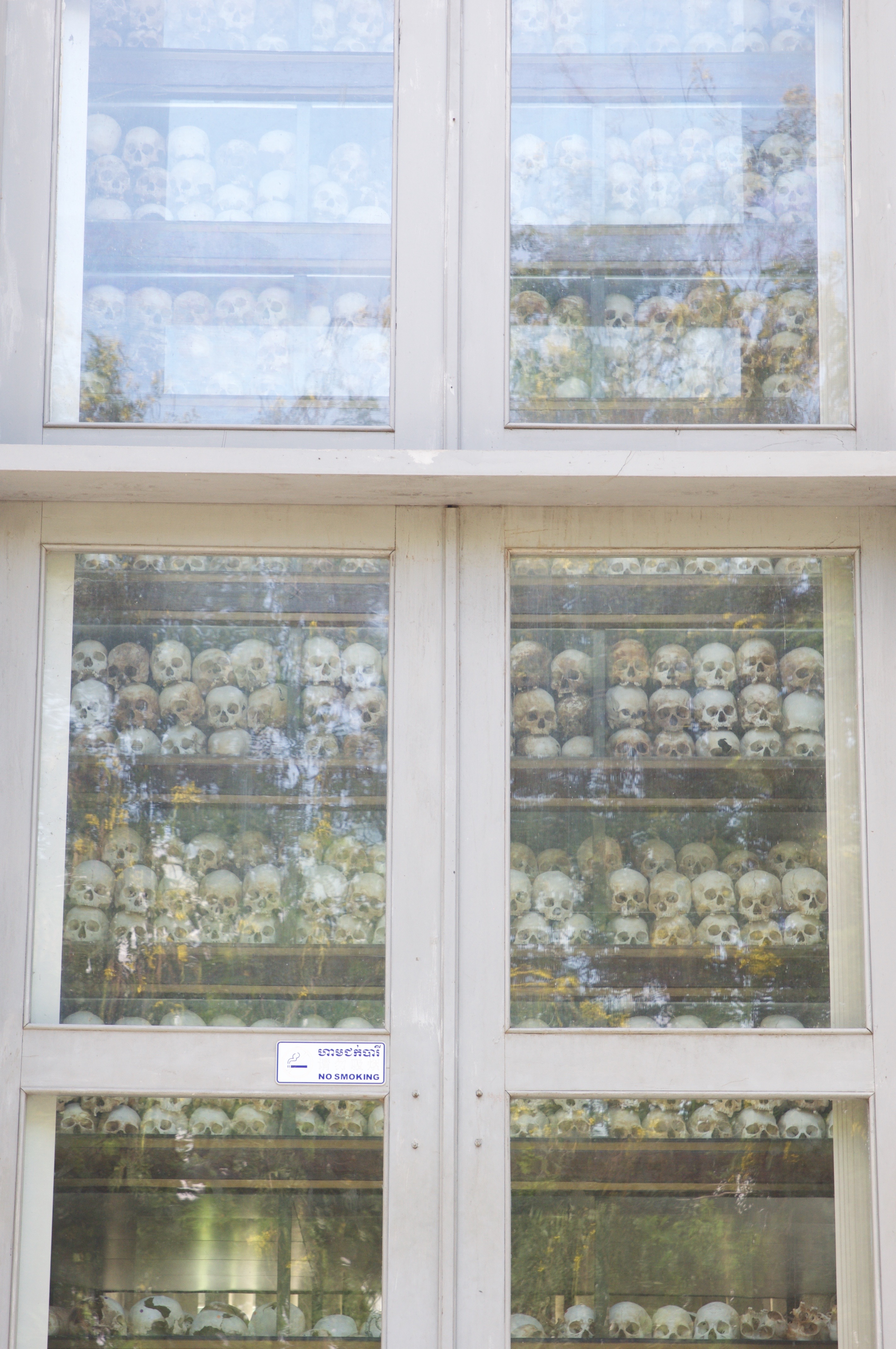 DSC_0083 Published November 16, 2015 at 2848 × 4288 in The Killing Fields of Choeung Ek The skull in the stupa look out over the killing fields…silent sentinals.