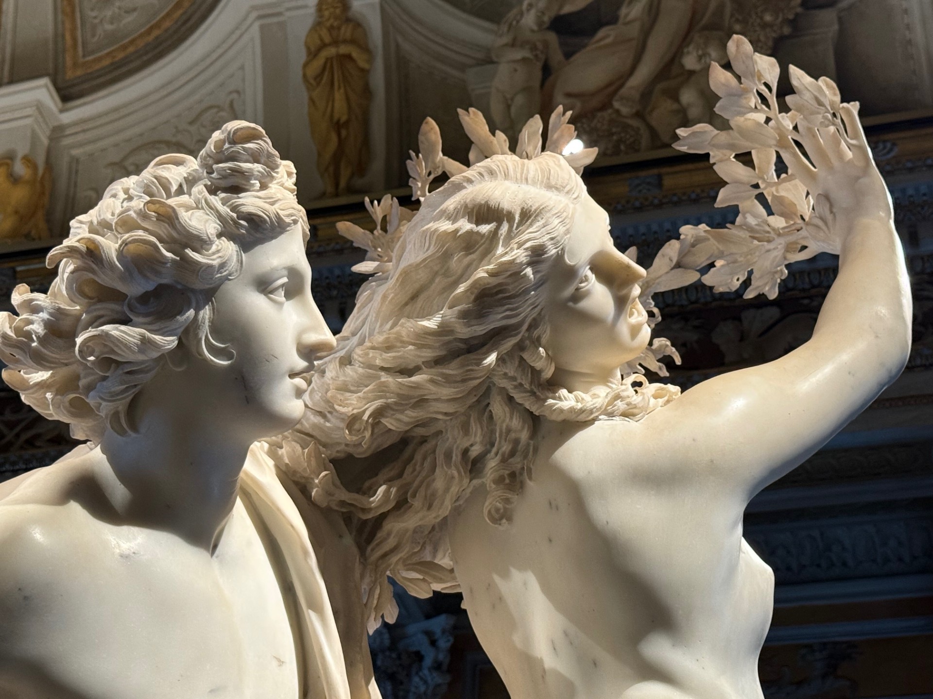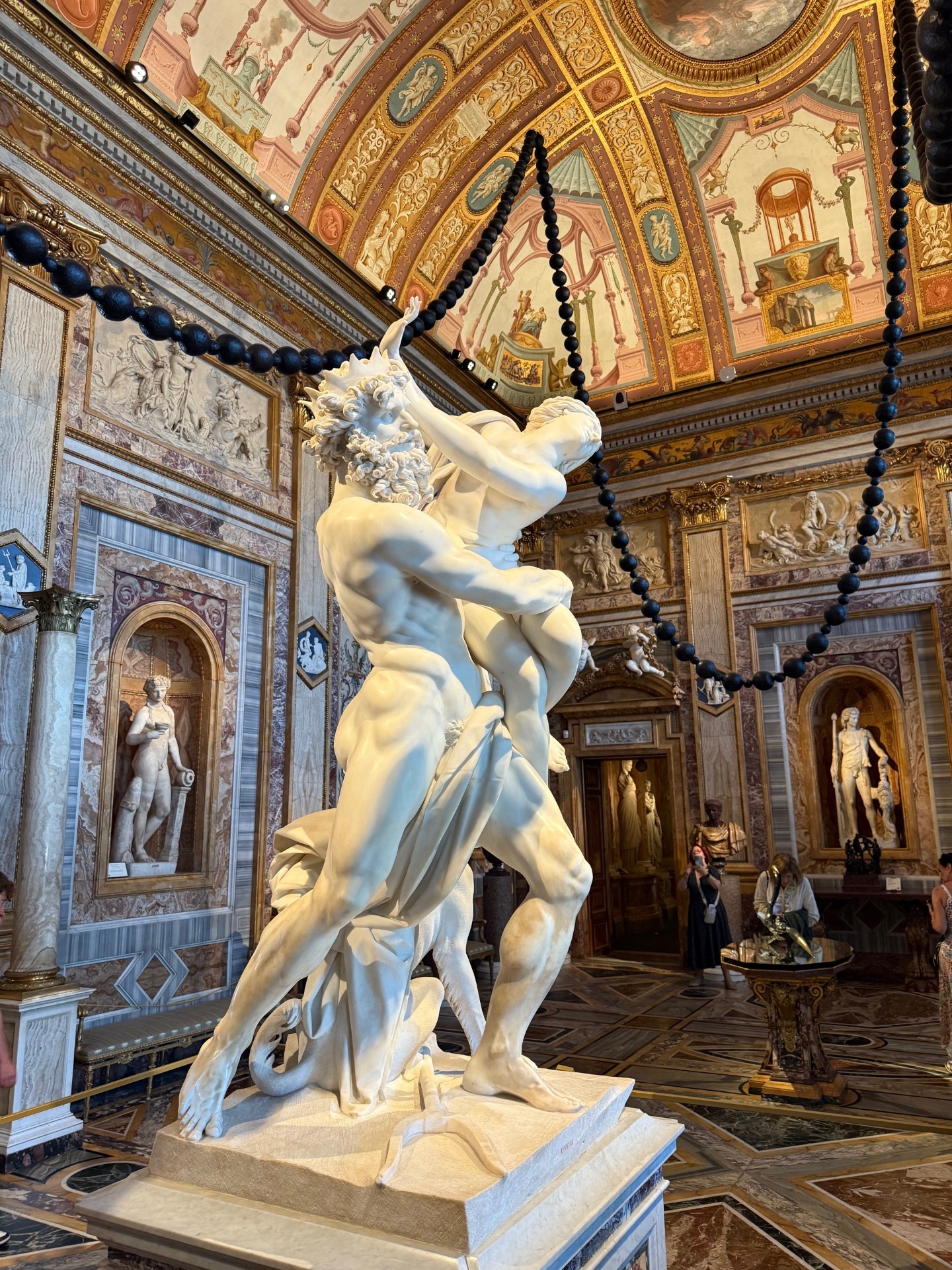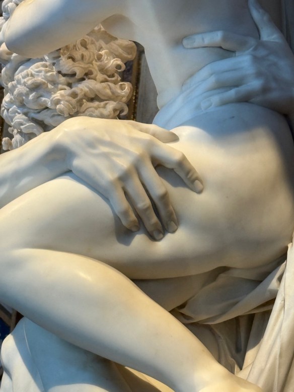 We had four days in Rome and we tried to fit in as much as possible…..we found the market at Campo Fiori and marveled at the Egyptian Obilesk (3500 years old) in the center of Piazza Navona. We stood in awe of the Pantheon and watched the sun shine in through the oculus. We fought the crowds to get a glimpse of the Trevi Fountain and snuck under the city to see where the water arrived at Vicus Caprarius and found the Art Nouveau courtyard at Galleria Sciarra. We made it out to Galleria Borghese, one of the few times we chose a taxi over walking, but we had to get there for our 4:00pm reservation. And oh my goodness, what a gem this museum is. To see Bernini’s Rape of Proserpina and how Neptune’s hand makes marble look soft as it presses into her thigh. And the metamorphosis of Bernini’s Daphne as she is transformed into a laurel tree at Apollo’s touch. So many pieces on display of one of my favorite artists…Caravaggio.