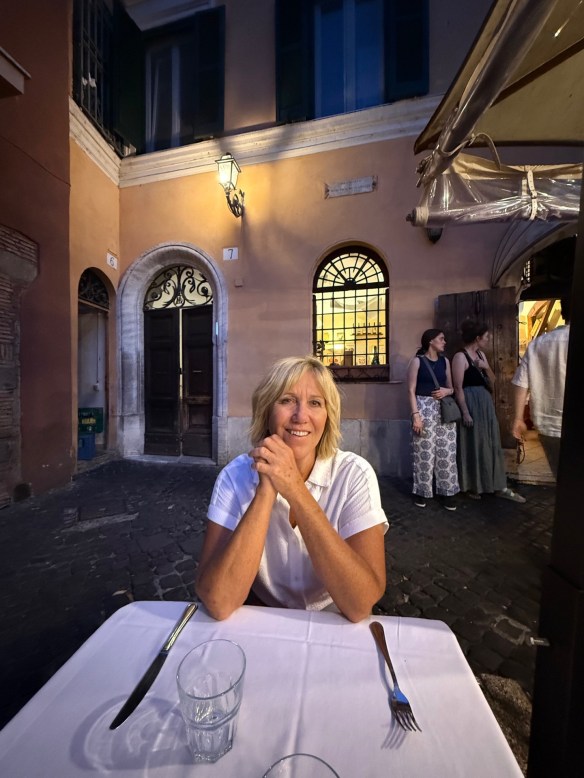 An overnight flight to Frankfurt (hellashish airport), then a quick flight to Leonardo da Vinci International Airport in Rome. We chose to stay in Trastevere, across the Tiber, for its distinct Roman charm, cobbled streets, and a bit quieter than the more touristy areas of Rome. Our choice of accommodation was The Hotel Santa Maria. A former convent, it now houses 19 rooms that overlook a charming courtyard filled with orange trees. It was a quiet and peaceful little oasis in the middle of the city. Great breakfast each morning and happy hour in the afternoon.