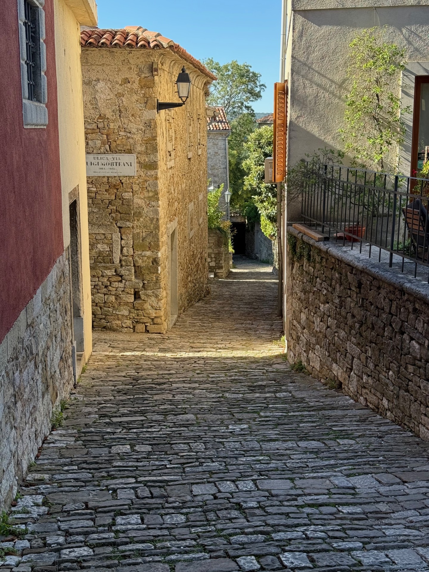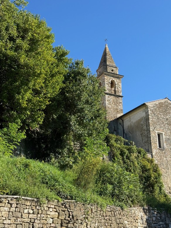 We chose to first visit the hilltop town of Motovun. It is probably the most photographed of all the hilltop towns. It is so well preserved and is perched dramatically on a cone-shaped hill high above the Mirna River Valley below. There are preserved defensive walls, churches and a maze of cobbled lanes.