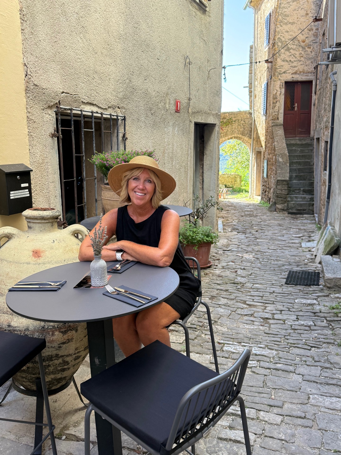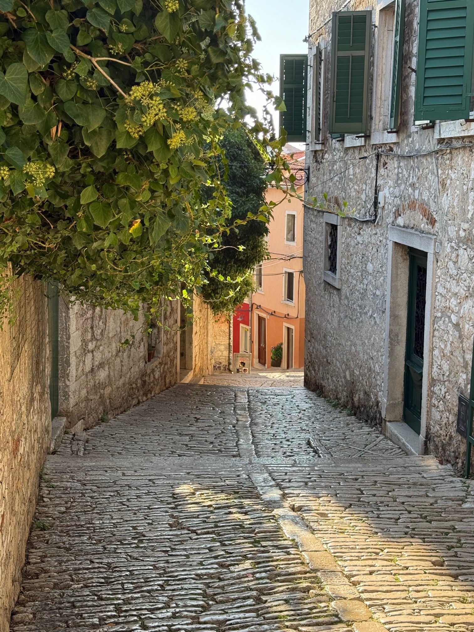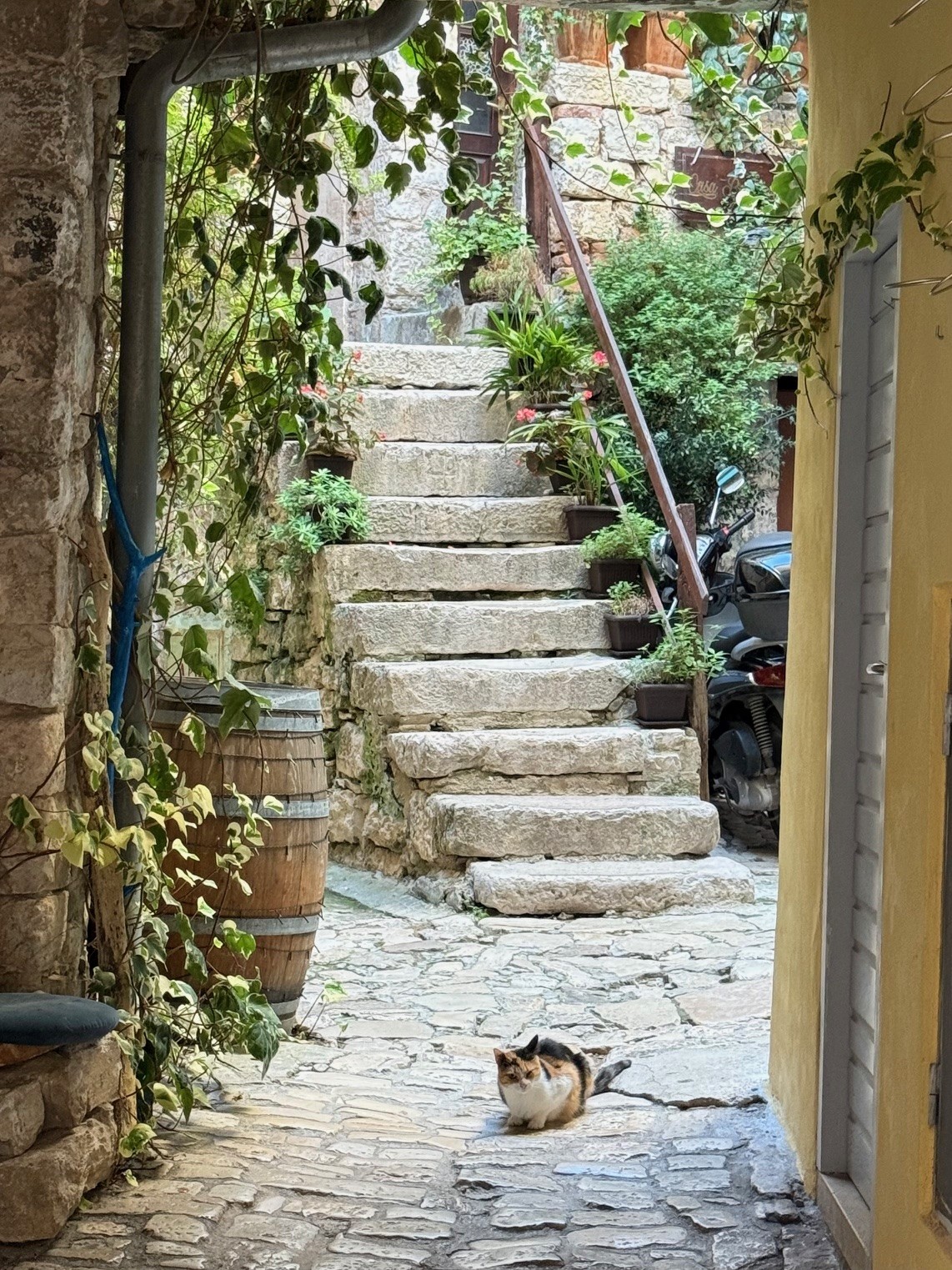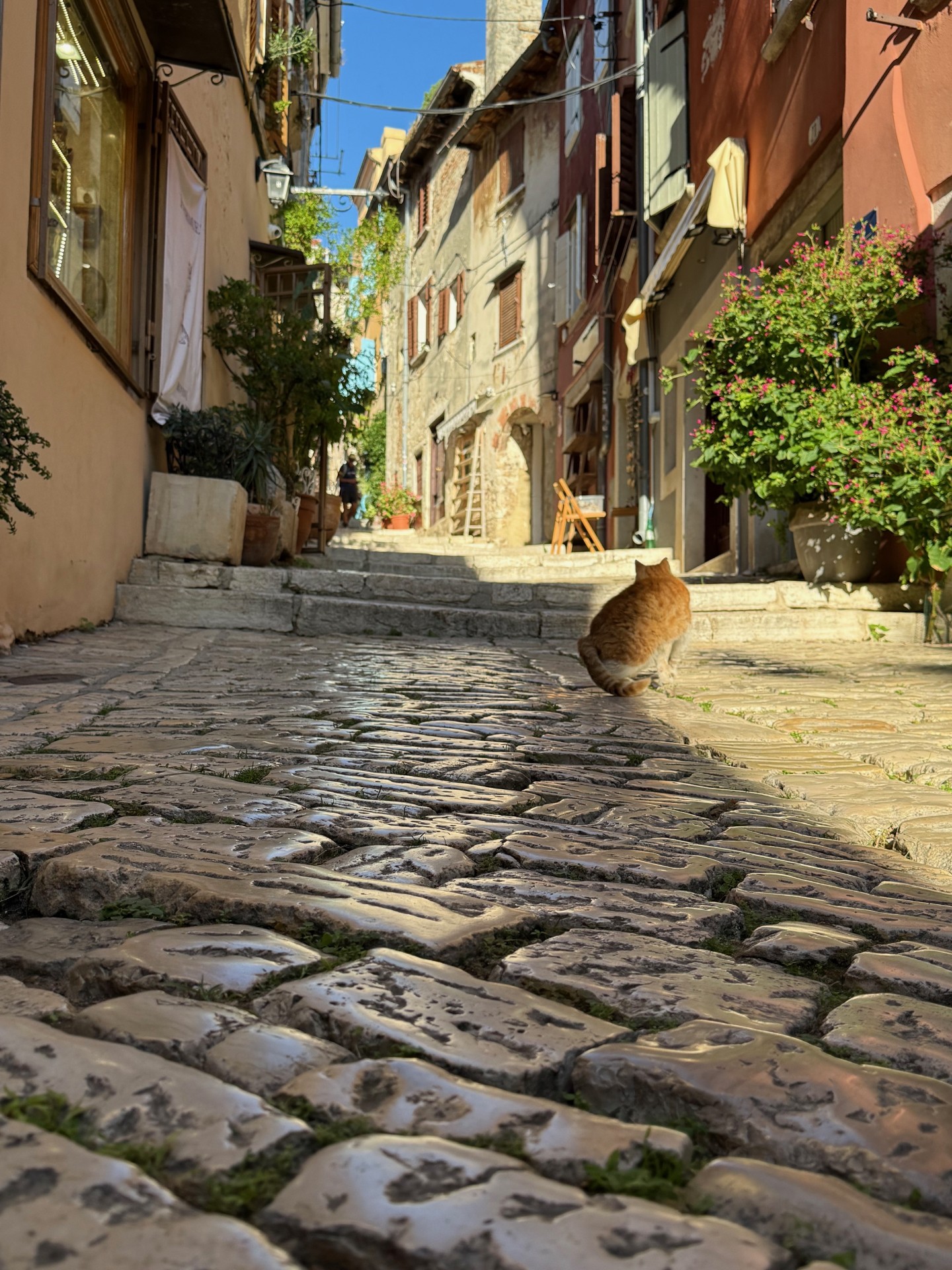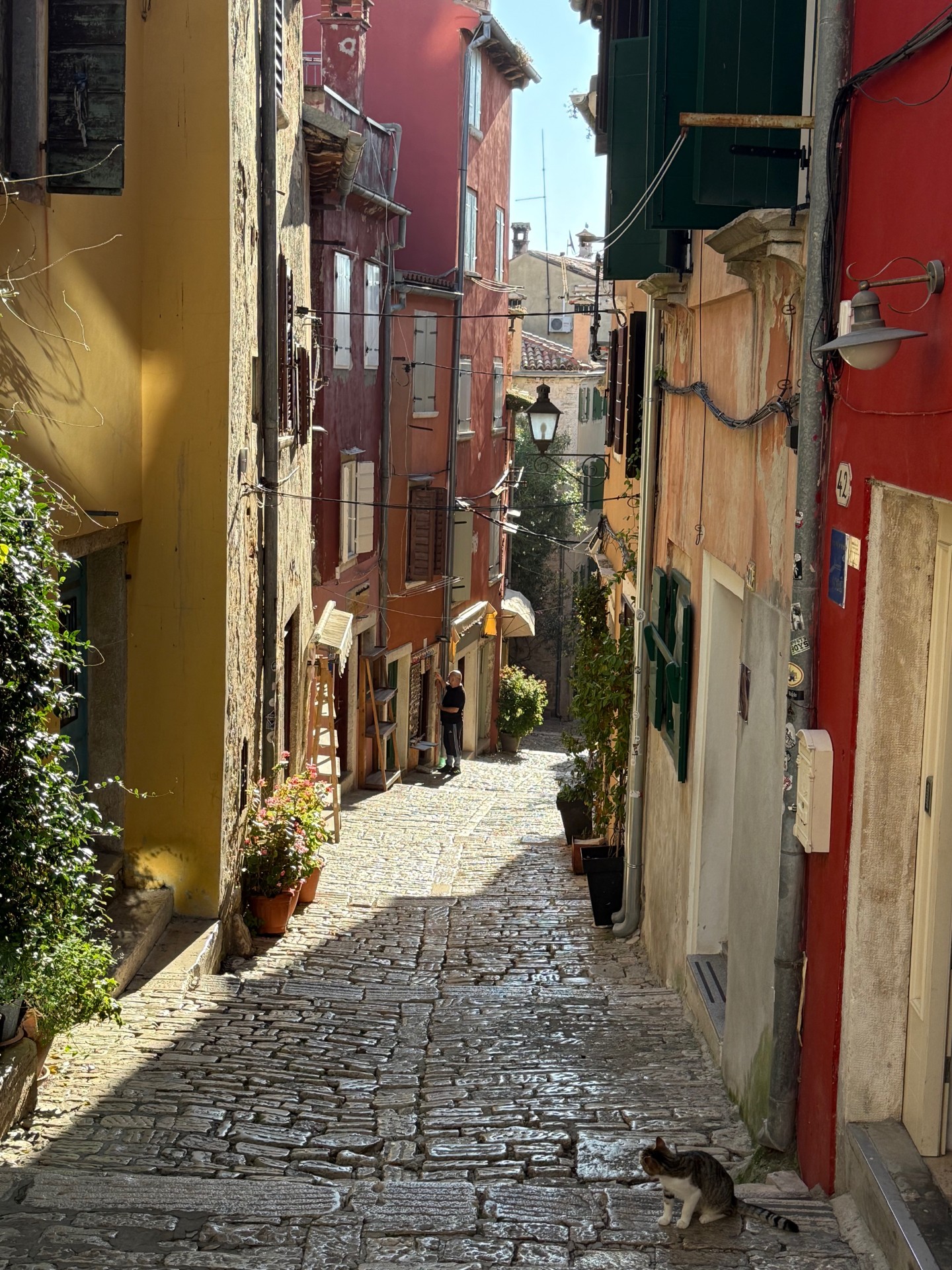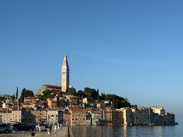 Another day we took a drive to the Venetian town of Rovinj (Row Vin ya). Rovinj was a key port during Venetian rule ((1283-1797) You see the influences everywhere. The old town is situated on a peninsula that juts into the sea. At the top is the Church of St. Euphemia. Cats seem to rule this little town as we saw them everywhere!!! After figuring out the parking situation, we entered the old town and just kept following lanes around and up, up to the church. We arrived very early and the town was just waking up, it seemed like the town belonged to us with no one else around. The views from the top is so worth the climb.