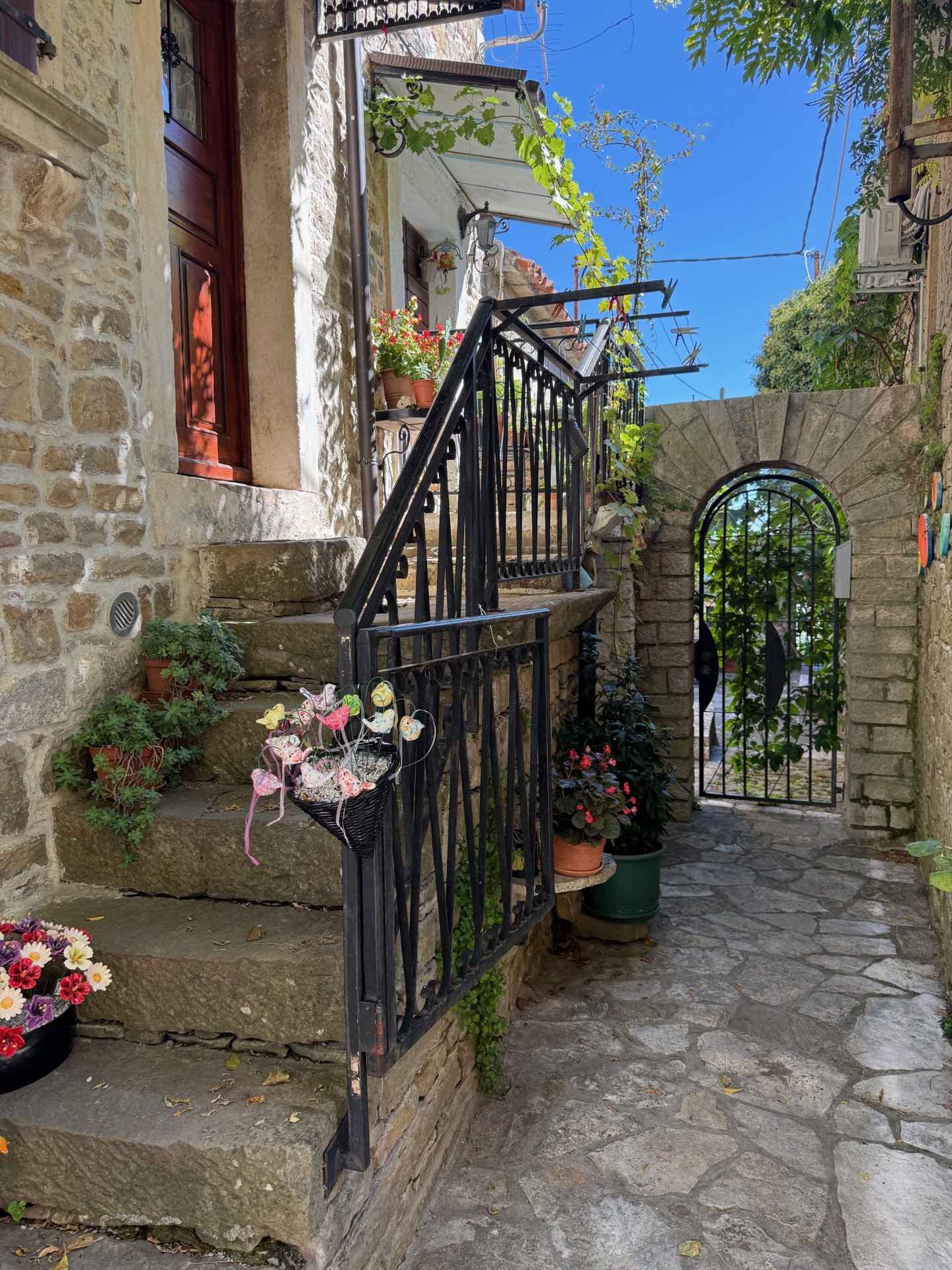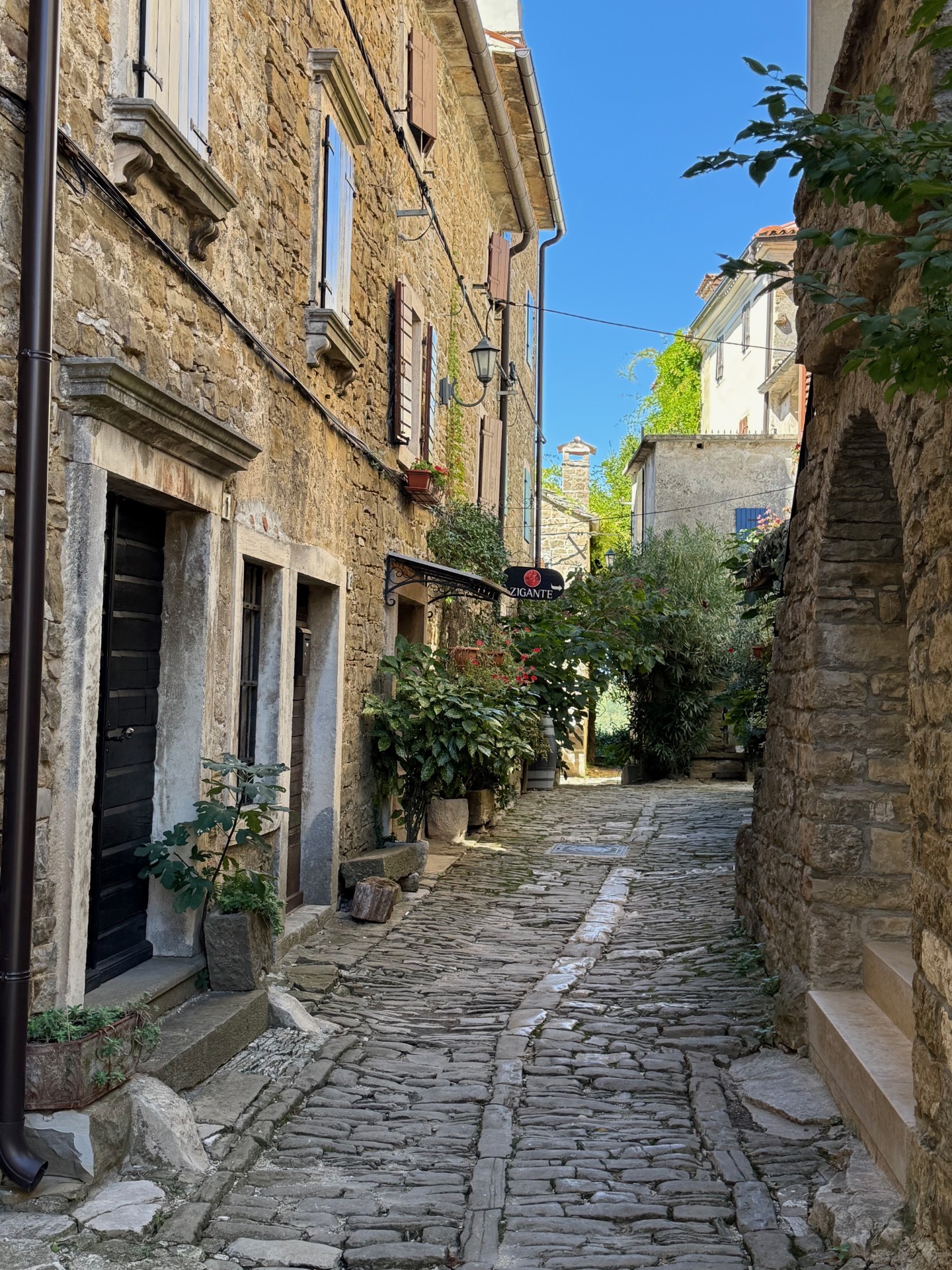 Next we drove to another hilltop town, Groznjan, known for it’s music and art scene. Similar to Motovun, there is a maze of lanes of cobblestone, churches, cafes, and cuteness everywhere. And just down from Groznjan was the second winery we wanted to visit, CLAI WINERY. Here we wanted to try the famous Istrian Malvasia. And we were so lucky to share some time with Tim, the winemaker. We learned soooo much. And the wine here was outstanding…so of course we had to get a few bottles.